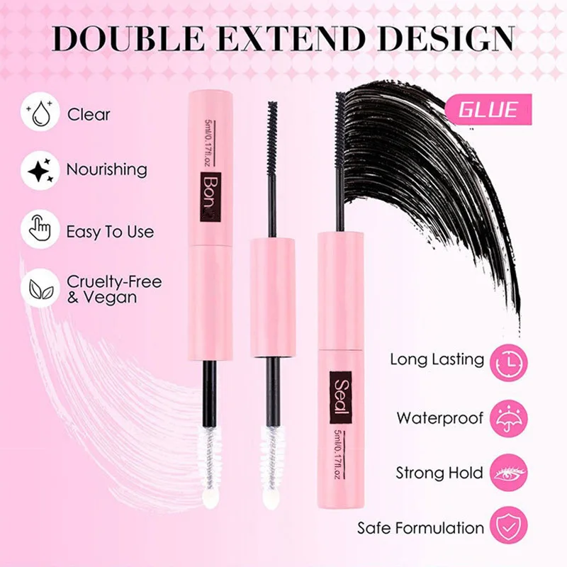 Double head design, easy to create exquisite eyelashes: The innovative double head structure allows one end to quickly attach eyelashes, while the other end is used for sealing. Streamlined eyelash extensions suitable for all skill levels - create soft daily eyelashes or bold and charming makeup in minutes without the need for professional knowledge