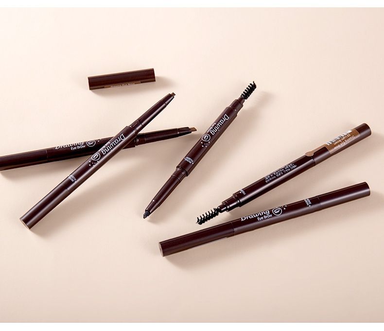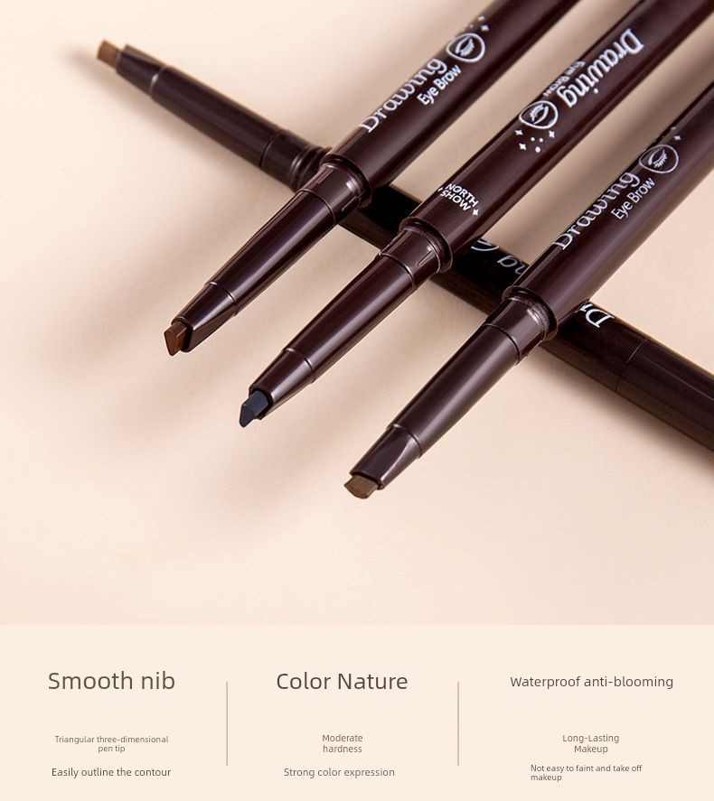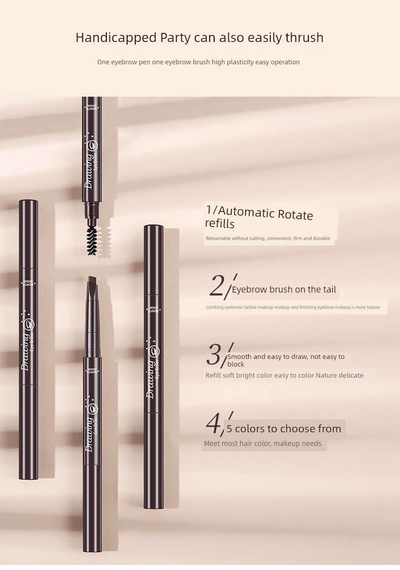 QUEEN CHAN Cross-Border English Version Double-Headed Automatically Rotate Eyebrow Pencil Waterproof Sweat-Proof Not Smudge Fine Triangle Thrush Eyebrow Pencil